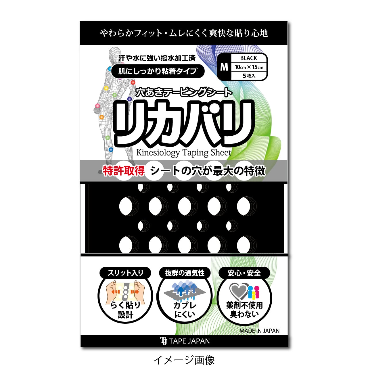 【通常送料無料】リカバリМサイズ〔ブラック〕※剝離紙スリット無し