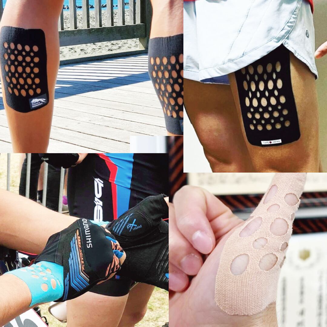 テープにあけられた大小無数の穴がユーザーの動きと連動。皮膚に適度な刺激を与え気になる違和感を軽減し、自らの回復力をサポートします。